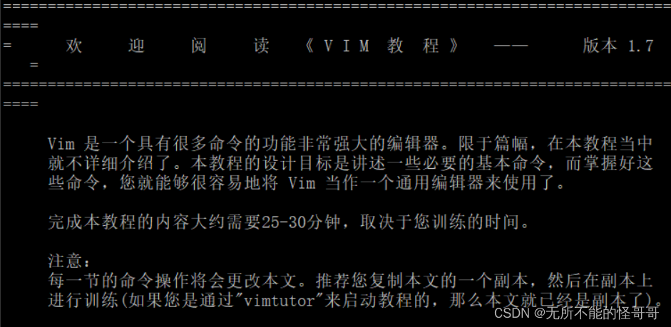 学习vim可以使用官方的教程,在shell下输入命令就能查看vim教程