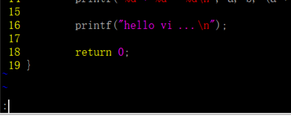 末行模式也叫底行模式,只能在命令模式下按冒号:进入,在插入模式下无法进入,进入末行 后可以在最后一行冒号的后面输入命令。