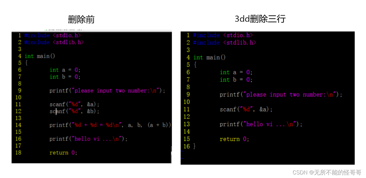 | d+方向键(箭头或hjkl) | 删除相应方向的字符或行(不建议用) |