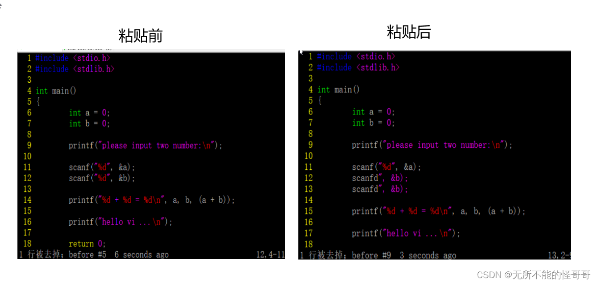 通过粘贴前后对比可以看到,粘贴会新开辟一行然后把剪切板内容复制到新开辟的这一行,而不会把原来的上一行或下一行覆盖掉,原来的下一行变为粘贴行的下一行。