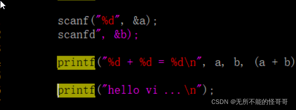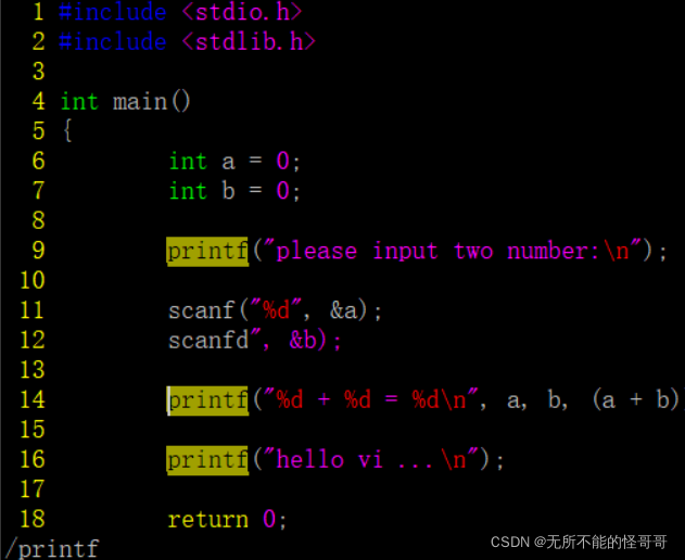 按一下n可以发现,光标移动到下一个高亮显示的printf处了