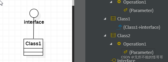 Realization,实现关系就是类或接口的实现,由三角箭头虚线从实现类指向接口类,(比如C++中纯虚函数的实现)。可以在右侧查看类之间的关系。