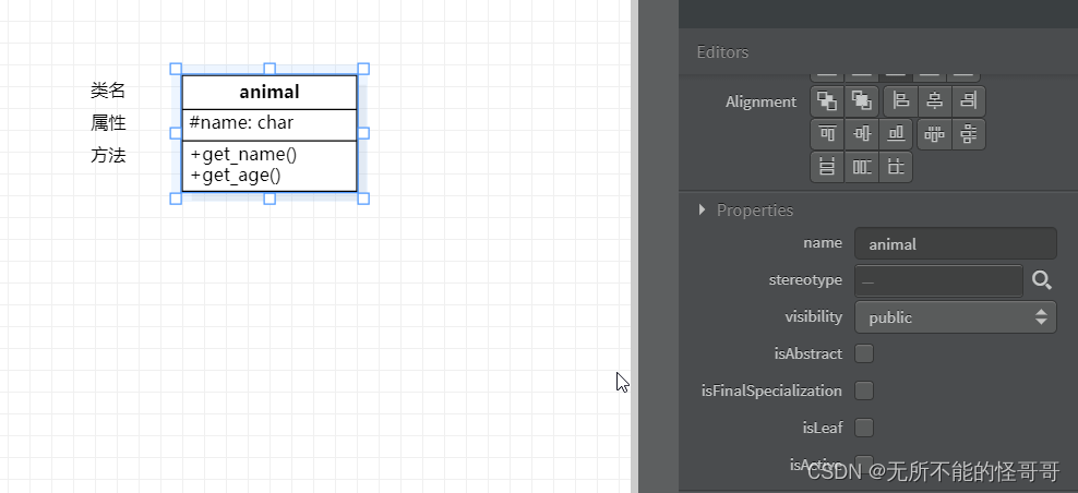 点击选择类组件就可以进行设置,可以直接在组件上修改,也可以在右侧Editors修改。