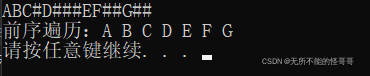 使用#号法创建一棵二叉树,如果没有左/右子树,则用#号代替,采取先创建根结点、然后创建左子树,最后创建右子树的方法创建二叉树(前序遍历),代码如下: