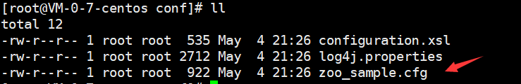 切换conf配置目录: cd /root/apache-zookeeper-3.5.8-bin/conf