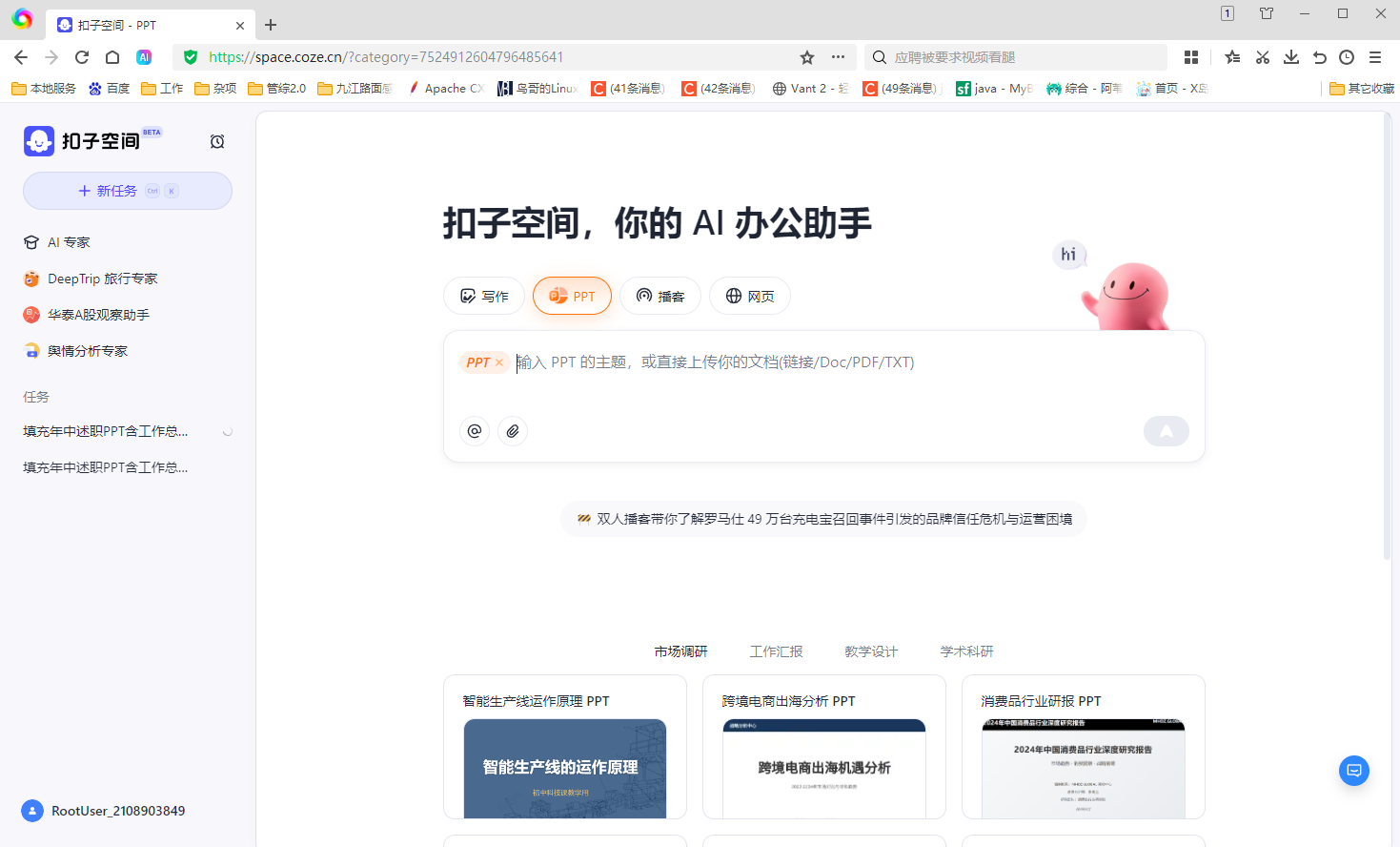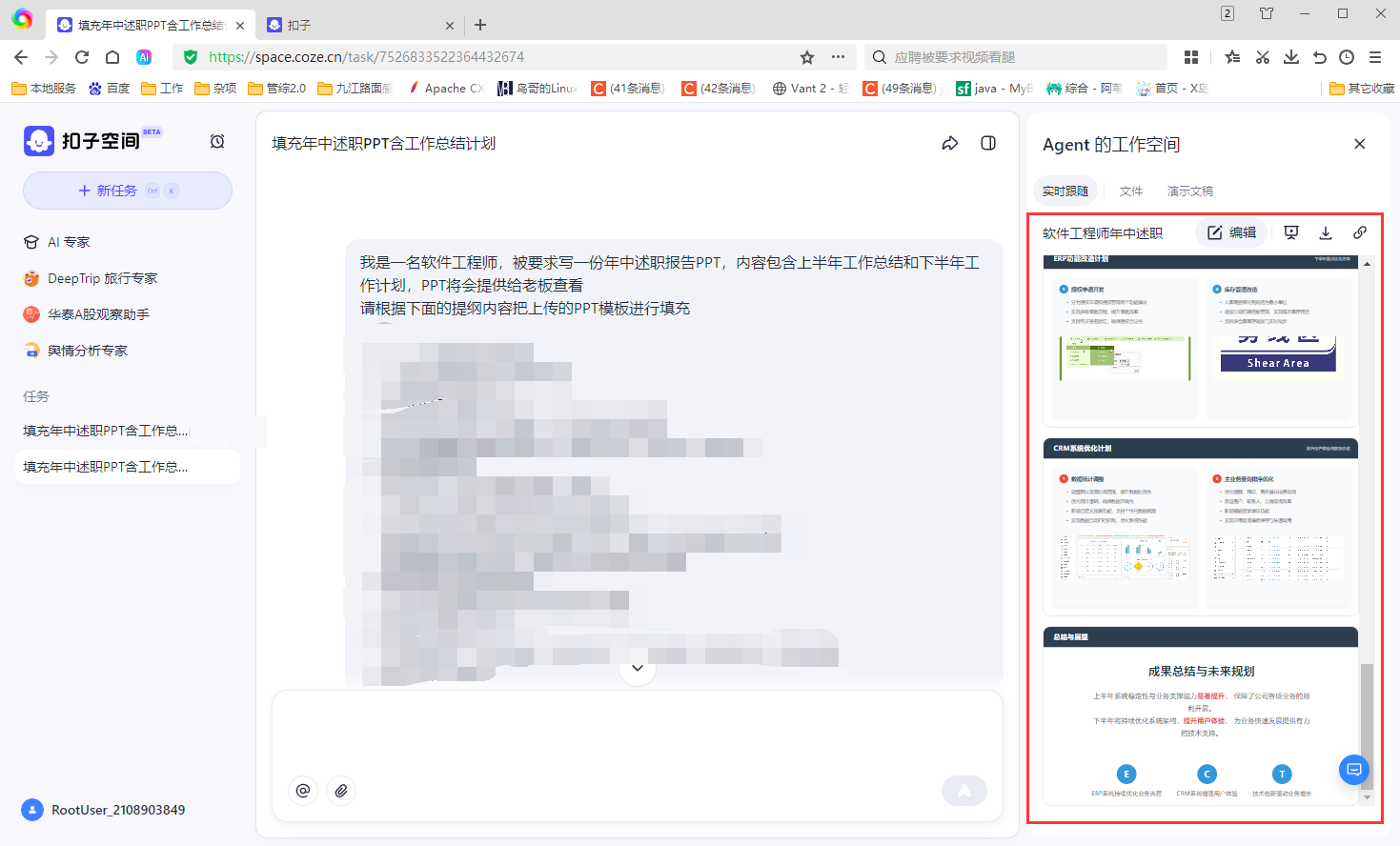 相比于Kimi,扣子控件没有这么智能,会直接根据内容生成出来