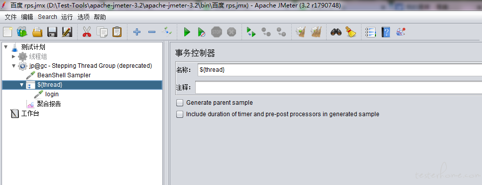 把 login 请求放到事物控制器下面。事物控制器的名称是获取的 Thread 变量。中间也可以添加一些监听器