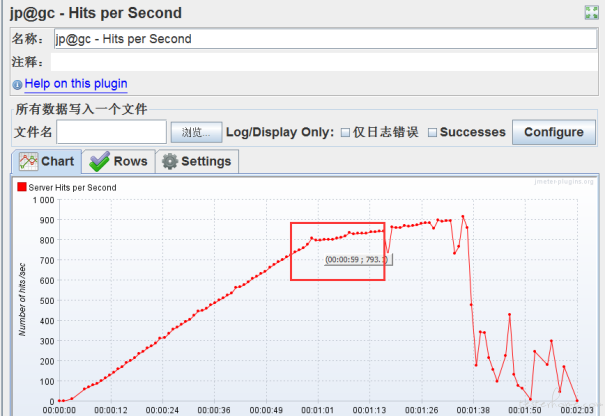 RPS 在 793/s 的时候,出现拐点,请求曲线的角度开始收窄