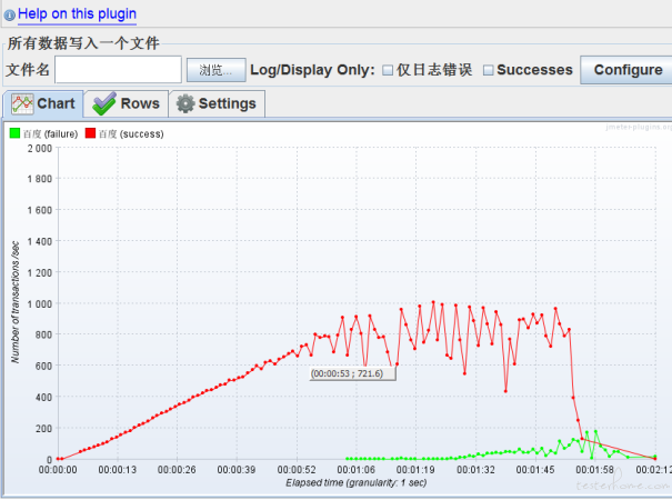 在 1:03 秒的时候,也就是 TPS 达到 907/S 的时候,事物开始出现错误。此时短暂出现百度页面打不开的情况
