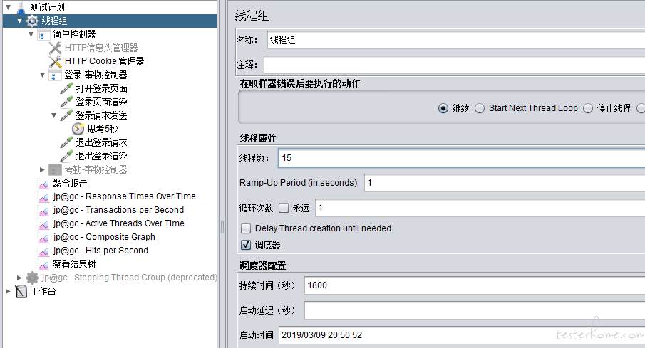 在 jmeter 中表示需要系统平均需要 15 个线程同时发起请求才能在对应的时间段内支撑对应的业务量