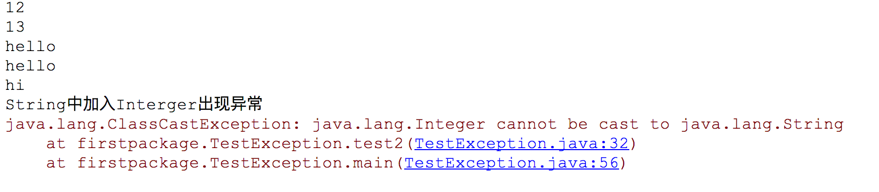 这是非String类型的输出过程,可以看出,所有的输出对象都通过String.valueof方法转换成了String类型,故而Integer中加入String类型也都是通过String类型的方式输出,不会报错。