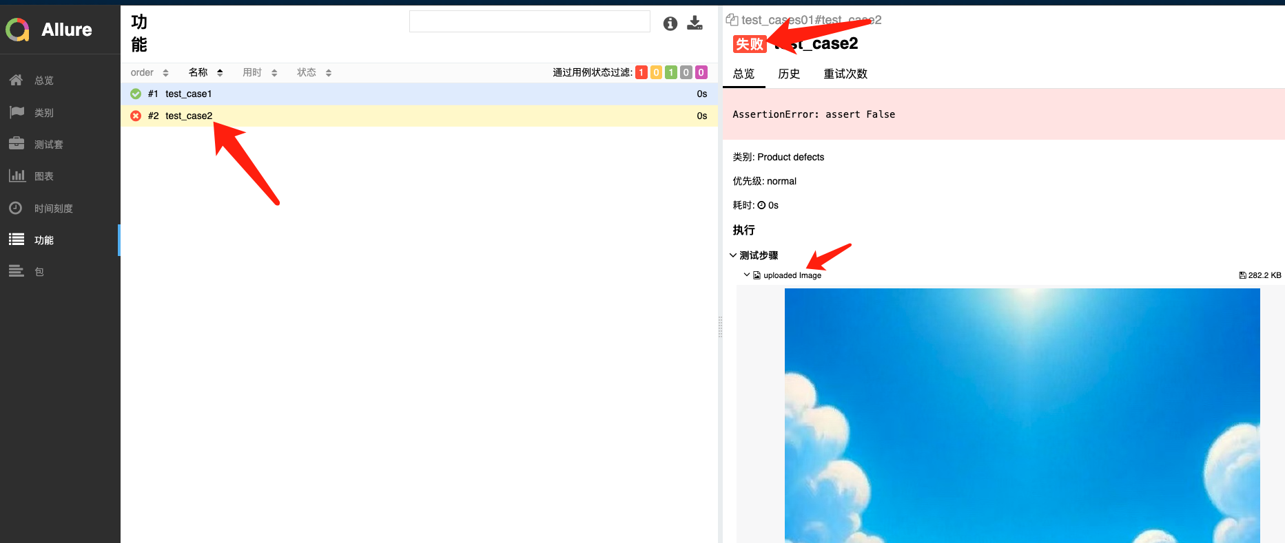 @pytest.hookimpl(hookwrapper=True) def pytest_runtest_makereport(item, call): outcome = yield report = outcome.get_result() if report.when == "call": # 过滤前置,后置,只保留测试用例 if report.outcome != "passed": # 过滤掉pass的用例 image_path = "test_image.jpg" with open(image_path, "rb") as image_file: allure.attach(image_file.read(), name="uploaded Image", attachment_type=allure.attachment_type.JPG )