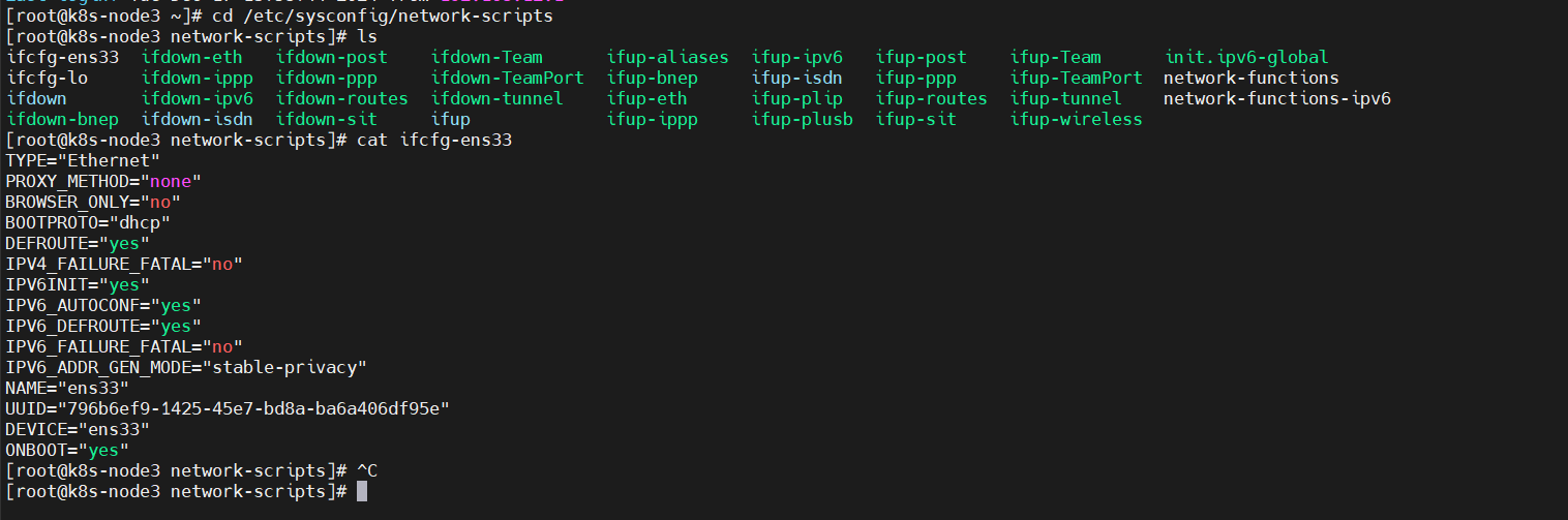 - 进入到/etc/sysconfig/network-scripts目录,找到ifcfg-ens33文件。