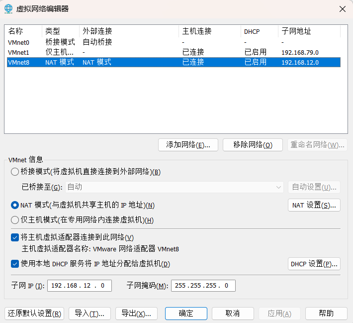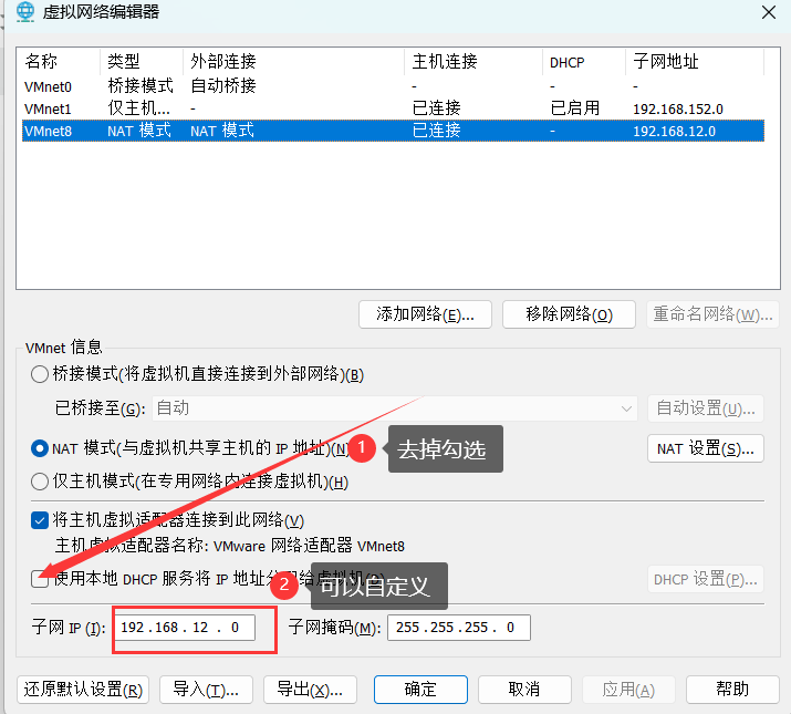 - 子网IP可以自定义,也可以不改,如果要改请注意,自定义的子网IP前三部分必须和IP地址保持一致,比如子网IP前三位是192.168.12,则对应的IP地址必须也是以192.168.12开头。