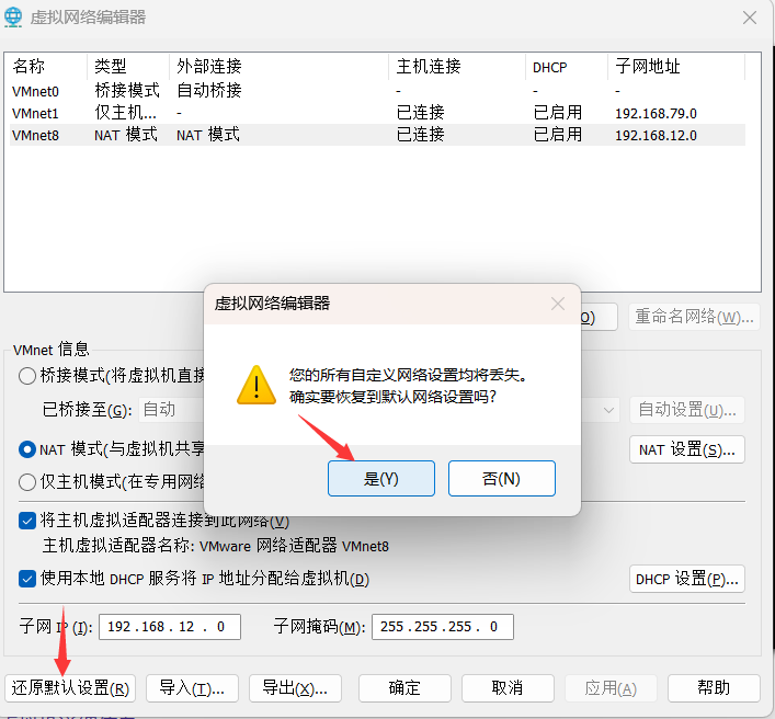 点击窗口左下角的“还原默认设置”按钮,在确认提示框中点击“是”。