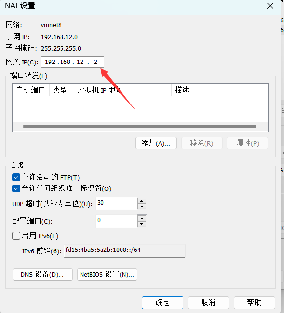 网关IP最后一位不能是1,可以设置为2(网上这么说,原因暂时不了解),前三位和IP地址、子网IP前三位保持一致即可。最后点击确定关闭弹窗。