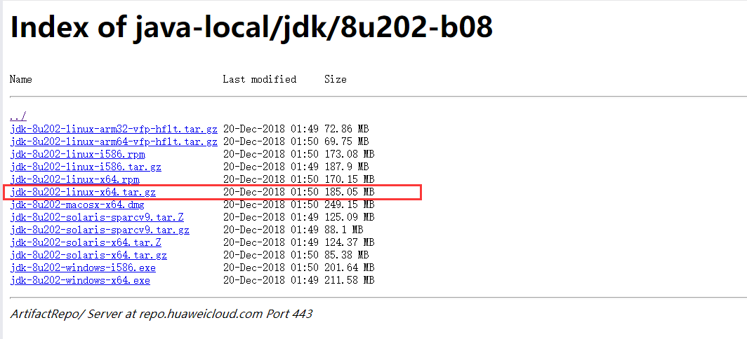 华为镜像源地址:https://repo.huaweicloud.com/artifactory/java-local/jdk/