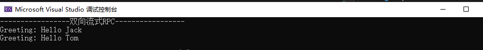 Console.WriteLine("-----------------双向流式RPC-----------------");