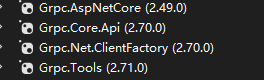 客户端:Grpc.AspNetCore、Grpc.Core.Api、Grpc.Net.ClientFactory、Grpc.Tools。