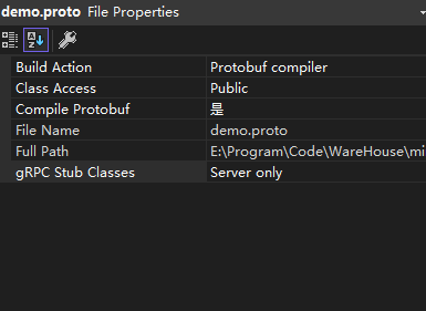 - 创建Protos文件夹并将服务端的demo.proto导入进来,同时设置类型为