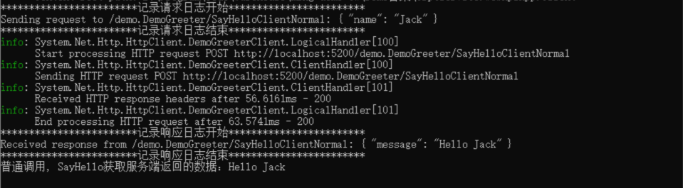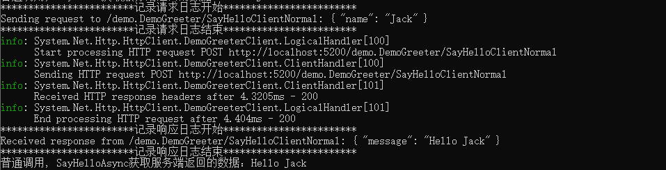 Console.WriteLine($"普通调用, SayHello获取服务端返回的数据:{result.Message}");