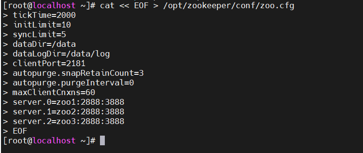 cat << EOF > /opt/zookeeper/conf/zoo.cfg