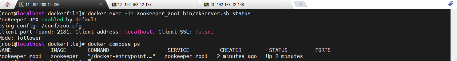 docker exec -it zookeeper_zoo2 bin/zkServer.sh status