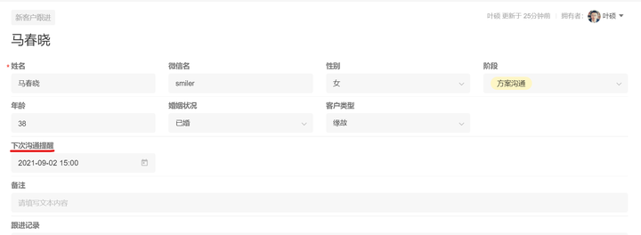 事无巨细记录客户的跟进全过程,把握各个阶段的跟进节奏,向着最终签单一步步推进。