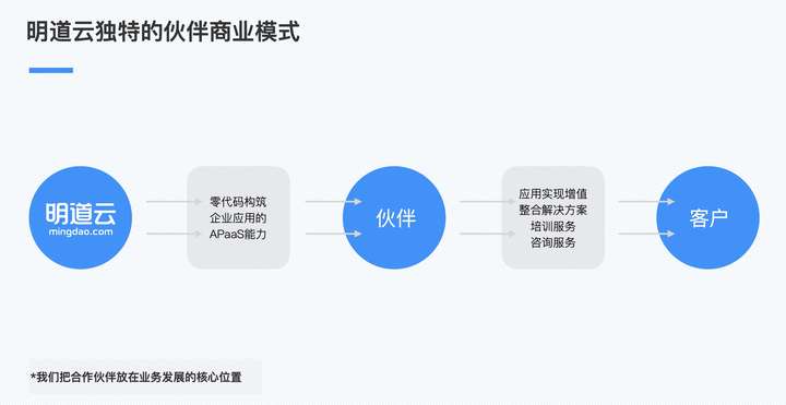 我们的商业模式可能还要更特殊一些,我们不是简单提供一个工具,明道云选择的商业模式,是向卖水人卖水,其实行业ISV(独立软件开发商)服务商是“卖水人”的主力军,他们已经在比如能源行业、金融行业等特定的领域深耕多年,他们面临的挑战更大,既要考虑客户的需求能不能满足,还要兼顾自己的成本结构是否合理。这样ISV就需要选择解决这些问题的高效工具,其实明道云选择的商业模式,主要是服务这些ISV,而不是直接服务行业用户。
