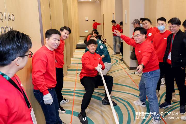 为了增进伙伴间的友谊,本次伙伴大会还举办首届拔河比赛。四支参赛队伍现场比拼,玩得尽兴出彩!