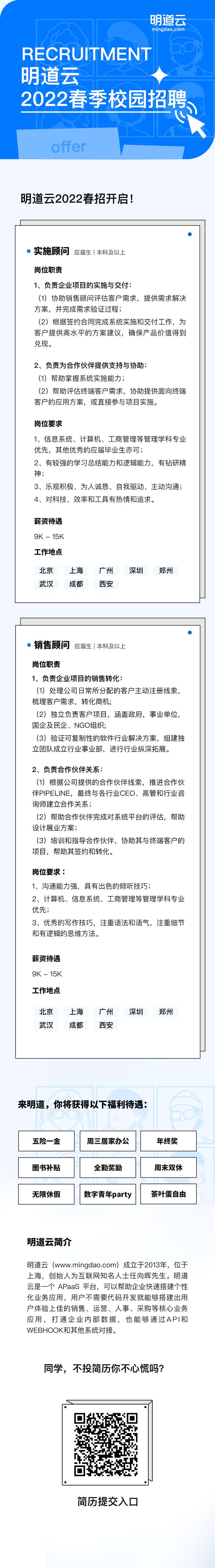 明道云2022春招正式开启!如果你对零代码感兴趣,欢迎查看下方岗位信息,为我们投递简历。