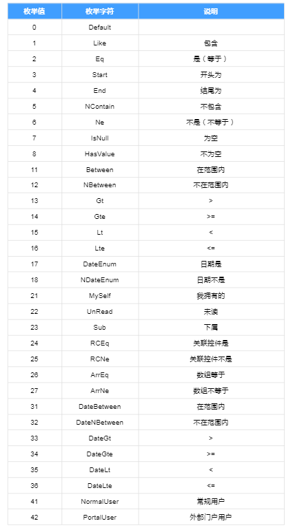 //2. string类型控件:筛选类型只能为(包含 不包含 开头为 结尾为 是 不是 为空 不为空)