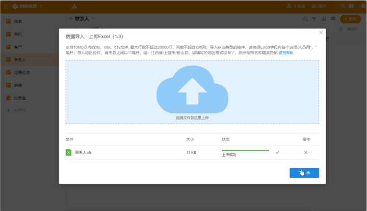 跟着动图的操作,依次导入客户表数据和联系人表数据。