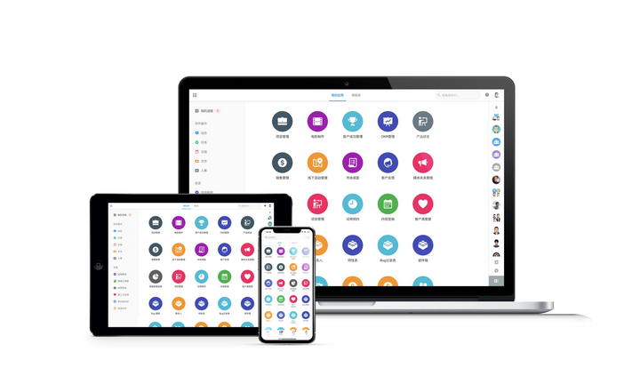 如果用户企业使用钉钉或企业微信,还可以将明道云搭建的应用直接对接到工作台上。明道云同时支持SaaS和私有部署,并提供覆盖PC客户端、Web、移动App、微信小程序的完整多端界面。