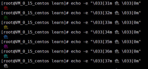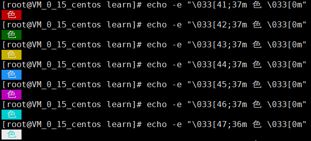 前景色: 30(黑色)、31(红色)、32(绿色)、 33(黄色)、34(蓝色)、35(洋 红)、36(青色)、37(白色)