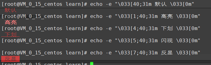 \033[0m 默认字体正常显示,不高亮