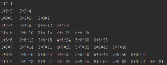 print('{}*{}={}'.format(b,a,a*b),end='\t')