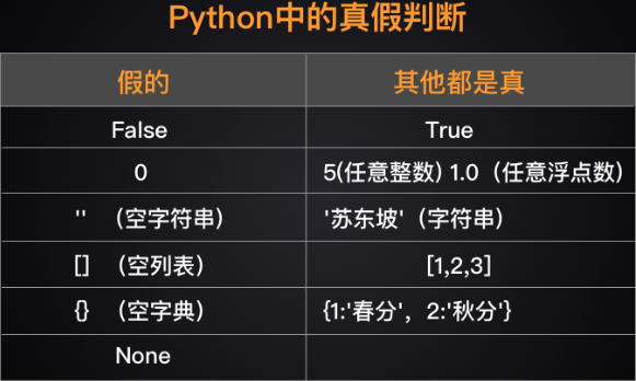 布尔类型就两个值 ,一个True(真),一个False(假), 主要用记逻辑判断. 非0即真 非空即真