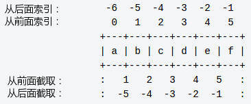 索引值以 0 为开始值,-1 为从末尾的开始位置。