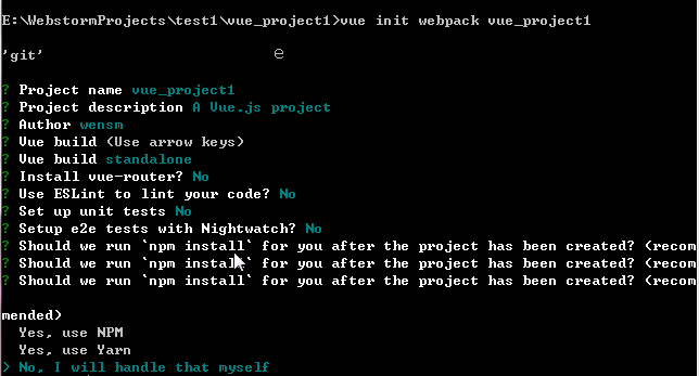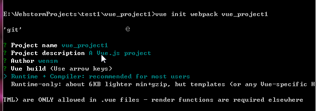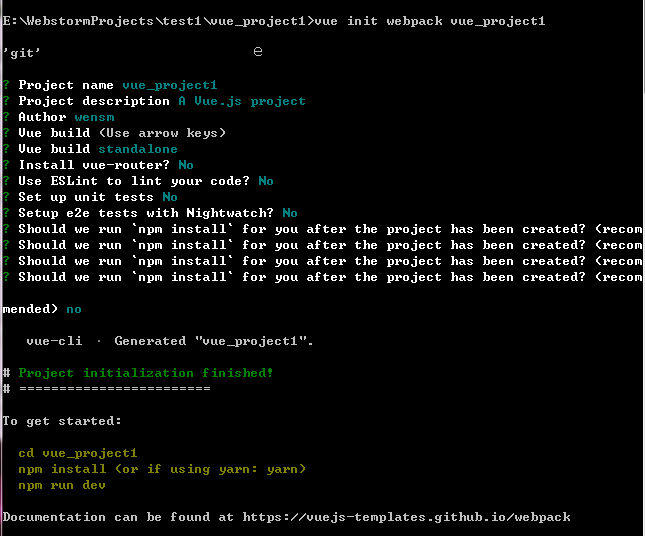 一、 管理员cmd进入目录, vue init webpack vue_project1 (项目名不能有大写字母)