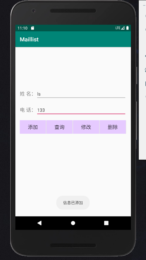 Toast.makeText(this,"信息已添加",Toast.LENGTH_LONG).show();