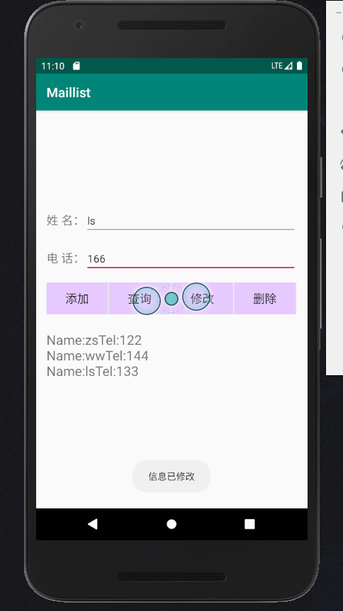 Toast.makeText(this,"信息已修改",Toast.LENGTH_LONG).show();