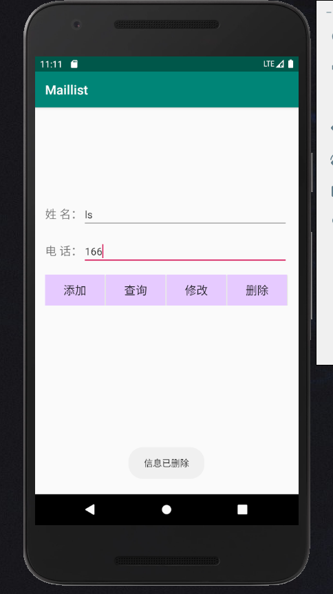 Toast.makeText(this,"信息已删除",Toast.LENGTH_LONG).show();