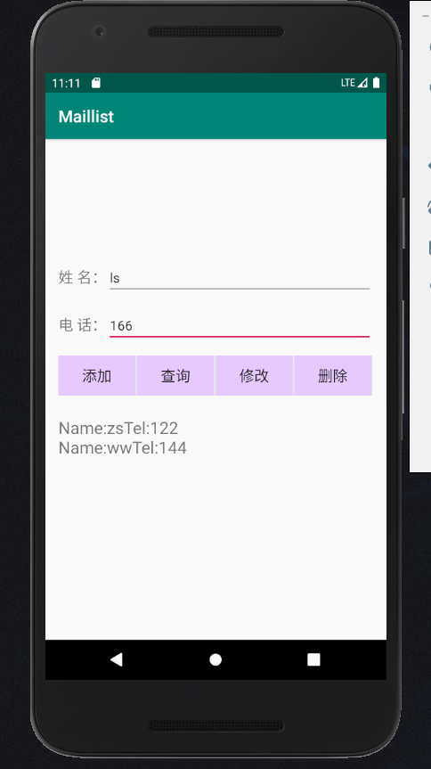 mTvShow.setText("Name:"+cursor.getString(1)+"Tel:"+cursor.getString(2));