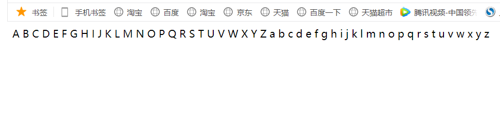 <%@ page language="java" contentType="text/html; charset=ISO-8859-1" pageEncoding="ISO-8859-1"%> <!DOCTYPE html PUBLIC "-//W3C//DTD HTML 4.01 Transitional//EN" "http://www.w3.org/TR/html4/loose.dtd"> <html> <head> <meta http-equiv="Content-Type" content="text/html; charset=UTF-8"> <title>1702zhouminghao</title> </head> <body> <% for(char x='A';x<='Z';x++) { out.println(" "+x); } for(char X='a';X<='z';X++) { out.println(" "+X); } %> </body> </html>