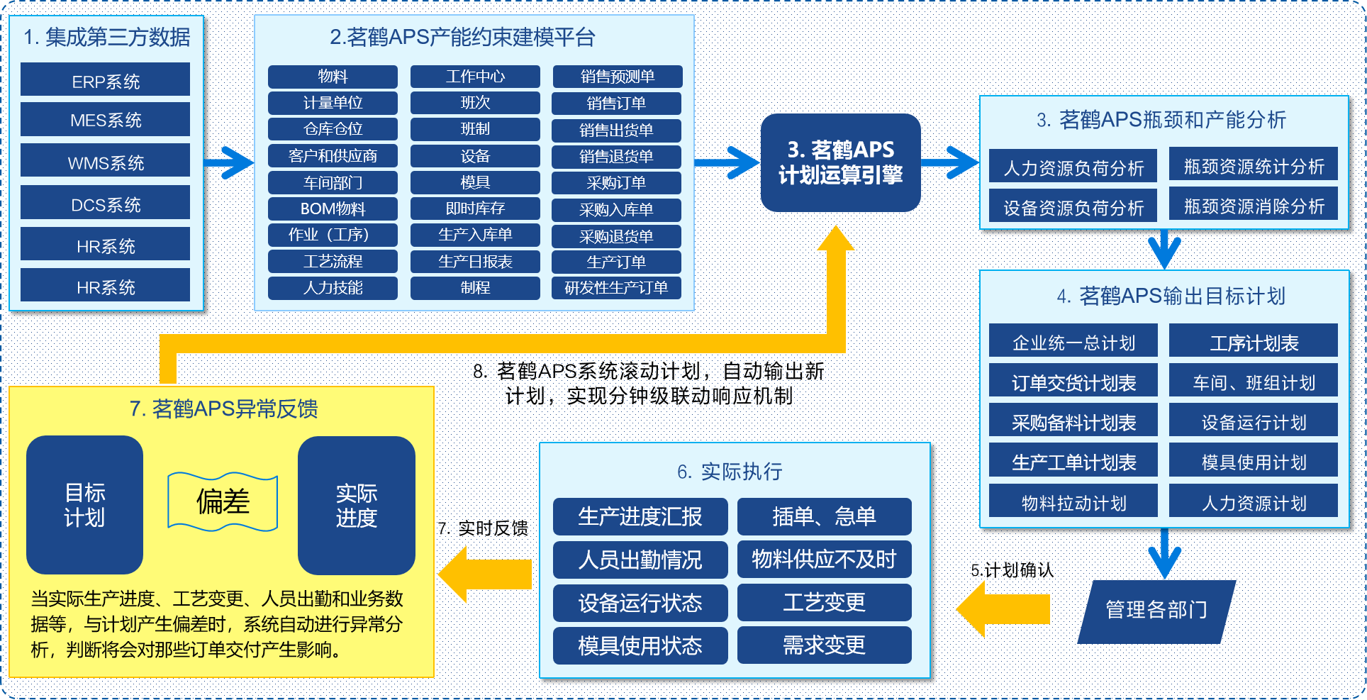 b.实时数据反馈机制支持APS动态调整计划,增强对市场波动与生产异常的适应能力。