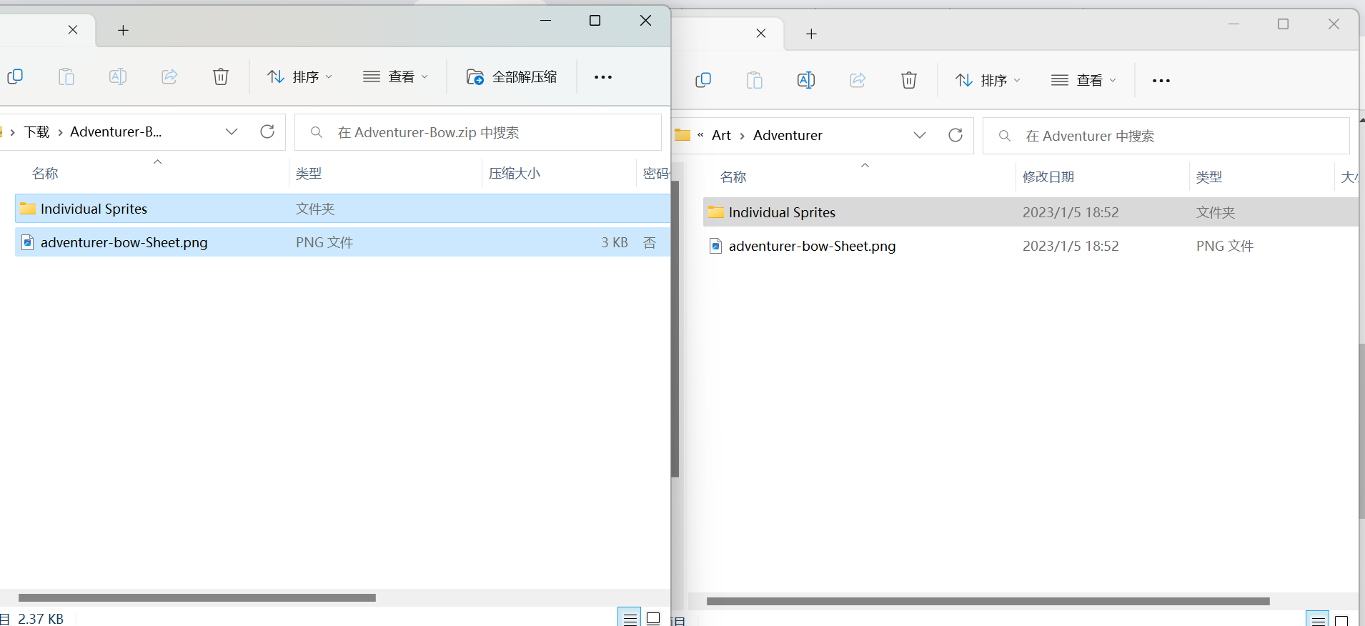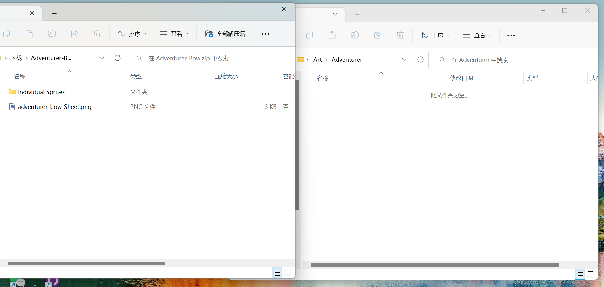 进入adventure 同时另开一个之前下载的压缩包窗口