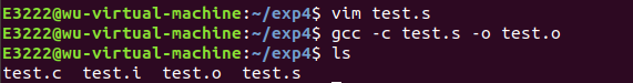 同样的我们可以用vim打开test.s文件来查看内容,也可以用命令,如cat