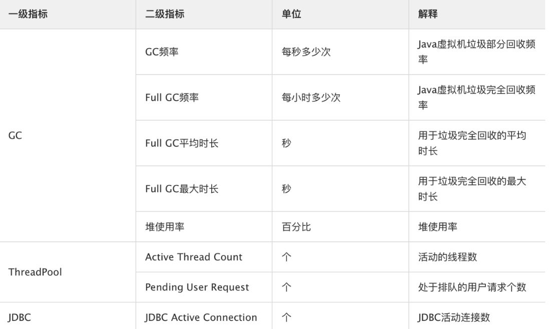 常用的中间件例如Tomcat、Weblogic等指标主要包括JVM、ThreadPool、JDBC,具体如下: