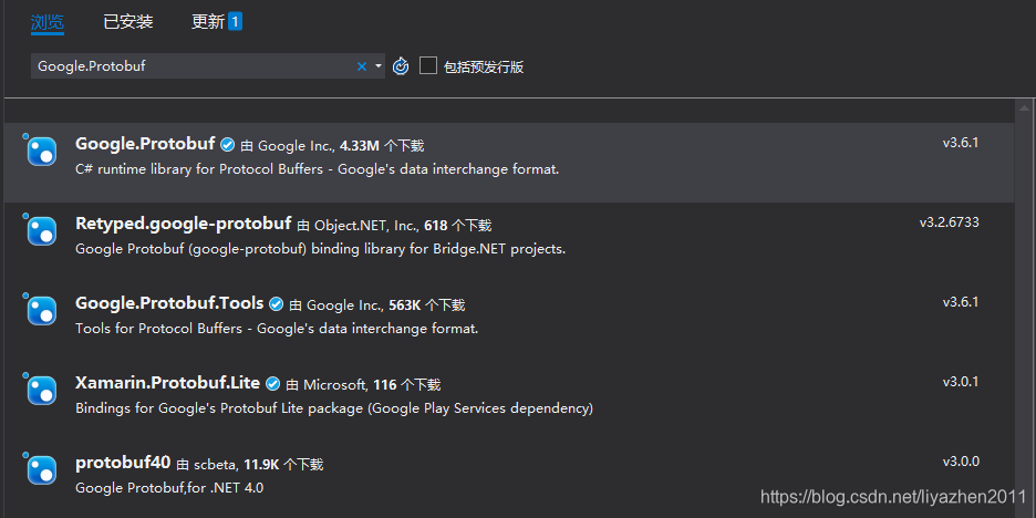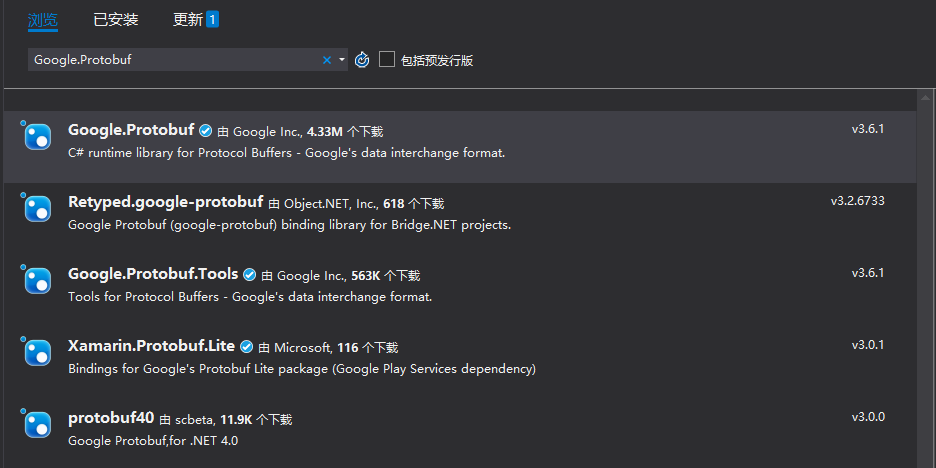 属性- 管理NuGet程序包 - 安装Google.Protobuf